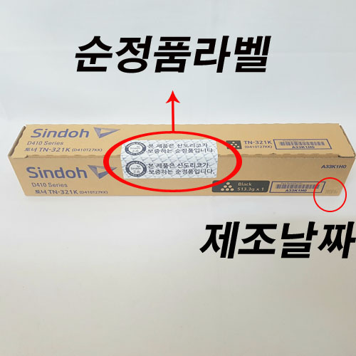 신도리코 D410T27KK TN-321K 검정 정품토너 비매품도장 표기 제품 30% 차감 |