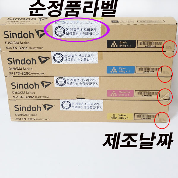 신도리코 D450T28KY TN-328Y 노랑 정품토너 비매품 도장 표기 제품 30% 차감 |